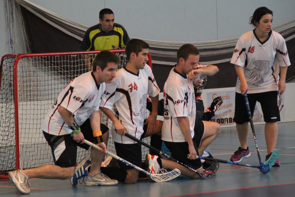 En début d’après-midi, se disputait un match jeunes entre Dahuts 1 ( Annecy- Sevrier) et Tigrous du Grésivaudan. Grosse ambiance dans la « Floorball Arena » tant les jeunes mouillèrent le maillot pour défendre leur couleur . Les savoyards l’emportent finalement 3 à 2 mais le match fut très équilibré et les Tigrous auraient pu revenir en fin de match sans les nombreux arrêts du gardien blanc.
